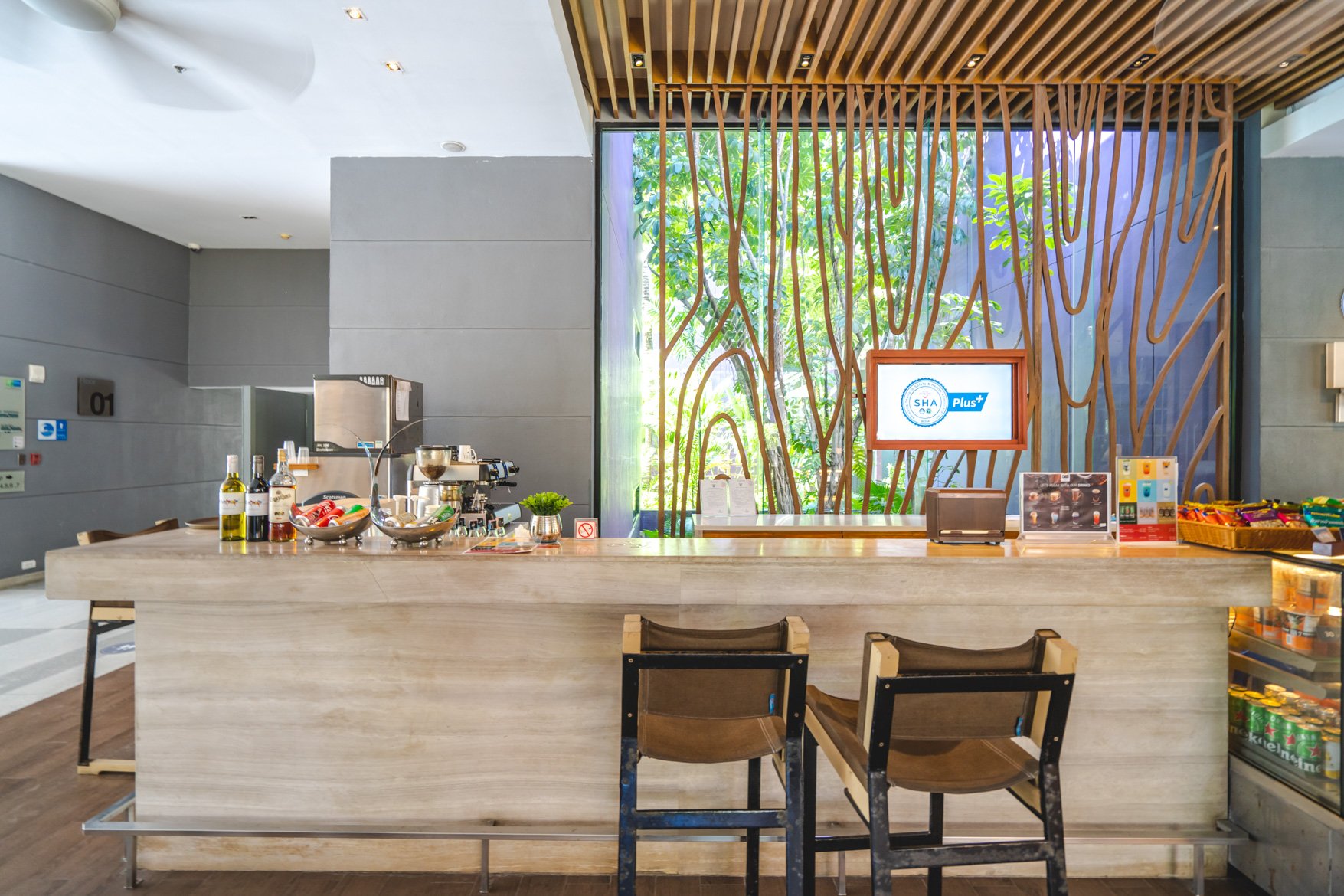 ข้างๆ เคาเตอร์เช็คอินจะมีบาร์ให้บริการด้วย