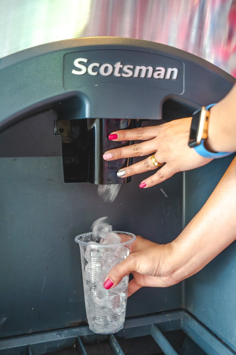 อีกหนึ่งบริการที่ประทับใจก็คือ เราสามารถซื้ออาหารจากข้างนอกไม่ว่าจะสั่งออนไลน์ เดลิเวอรี่ ใดๆก็แล้วแต่ เราสามารถฝากแช่ไว้ หรือจะขอจาน ช้อน อุปกรณ์ต่างๆ มานั่งกินได้เลย และมีเครื่องให้กดน้ำแข็งฟรีอีกด้วย