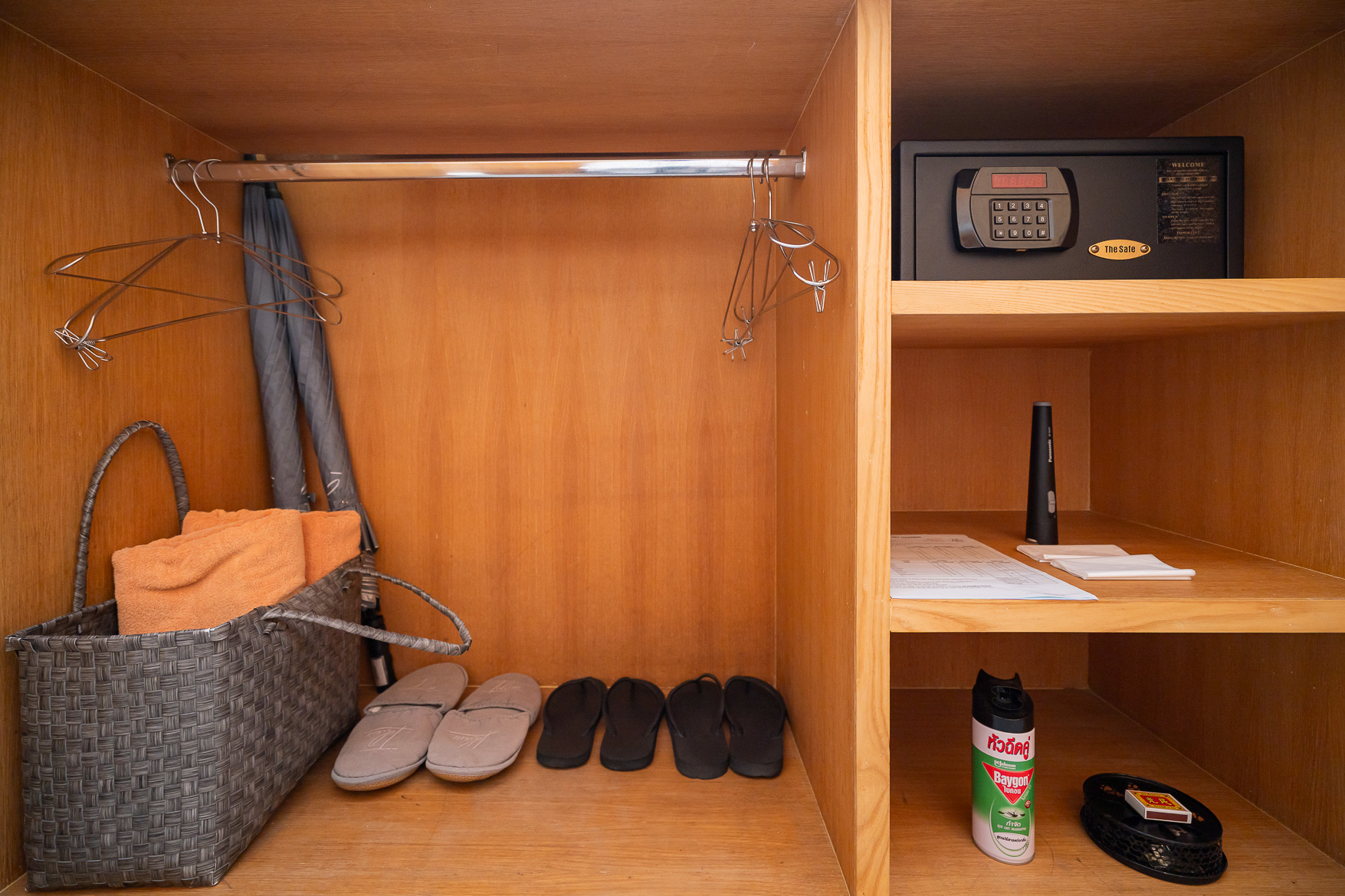 สิ่งของอำนวยความสะดวกสบายภายในห้อง มีต้องแต่รองเท้าแตะ ร่ม กระเป๋า ไม้แขวนเสื้อ ตู้เซฟ ตู้เย็น ฯลฯ