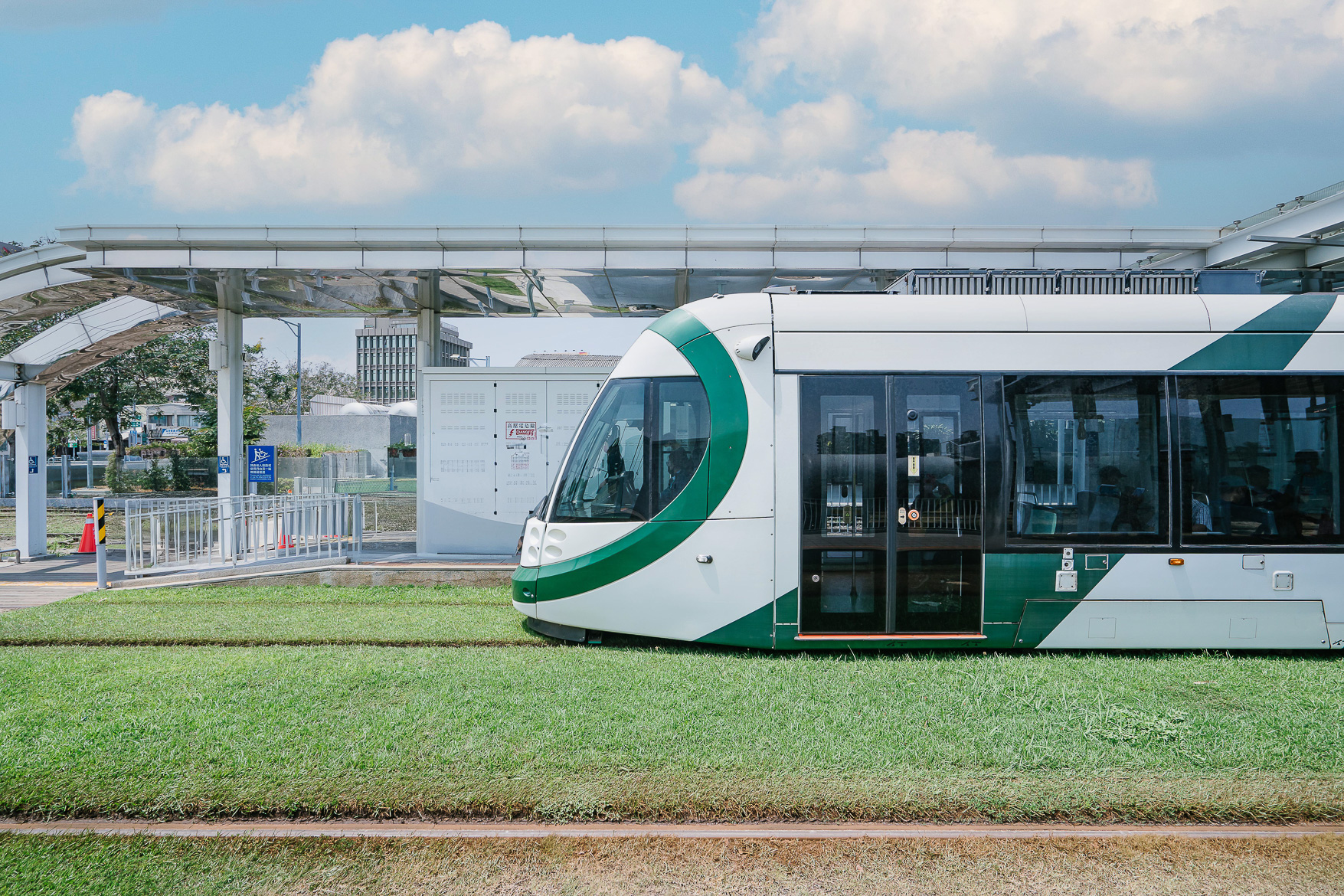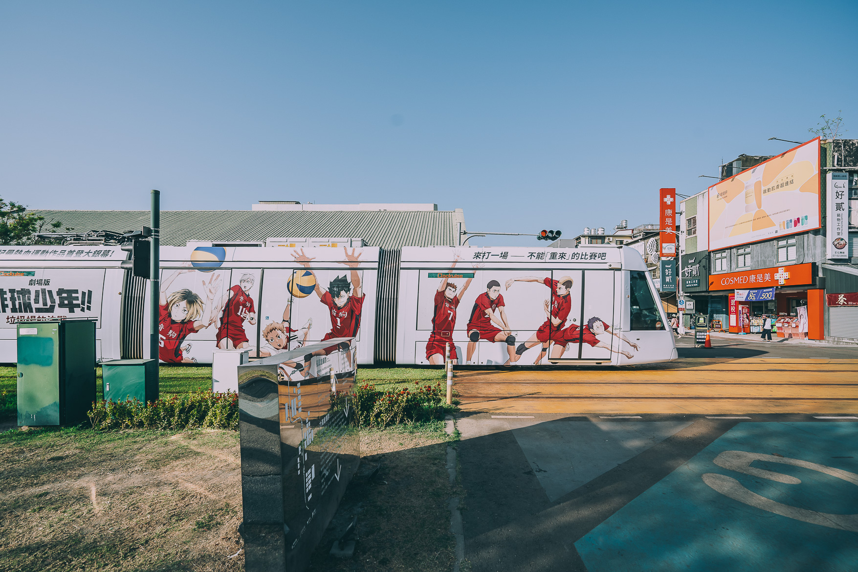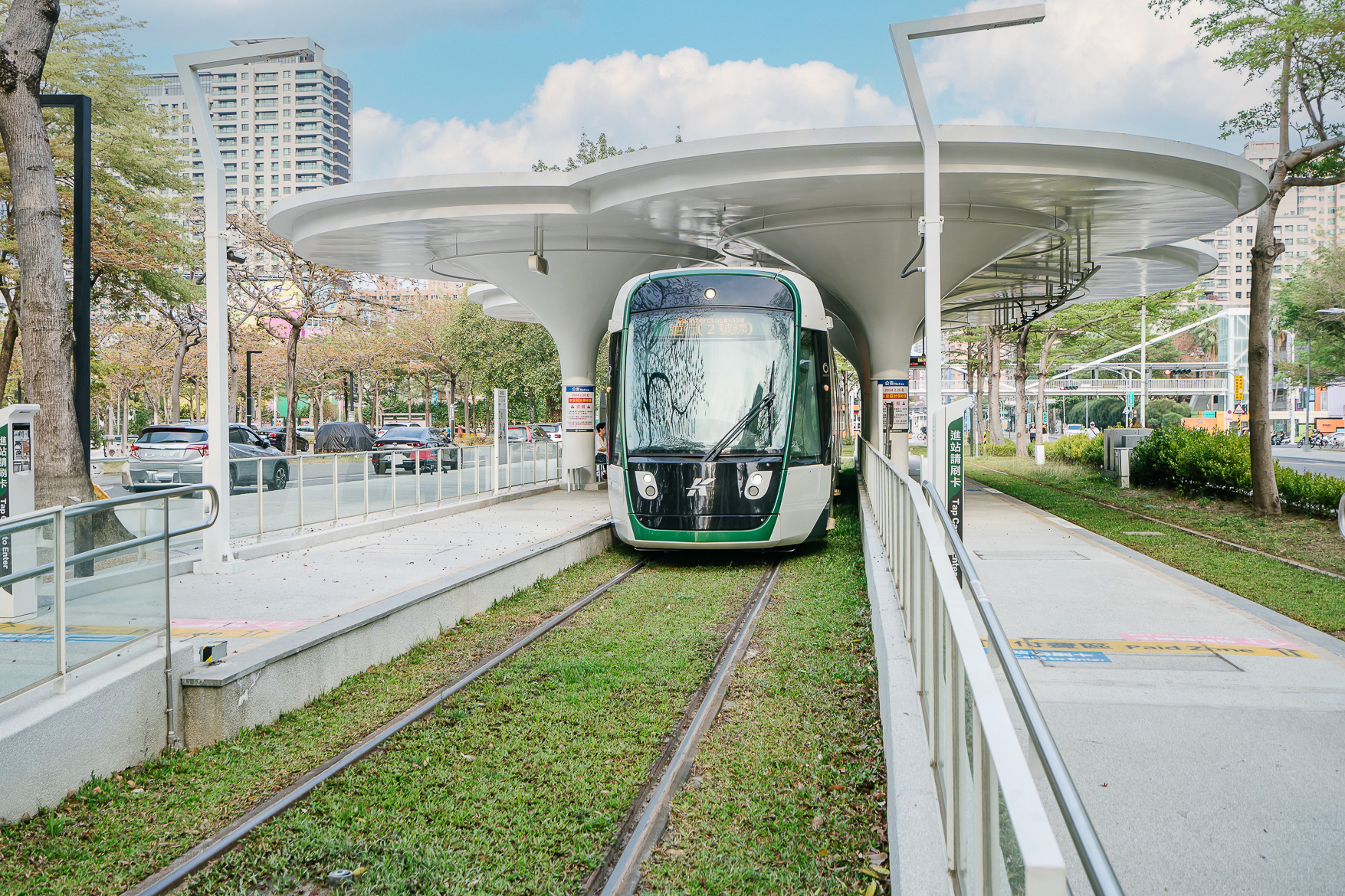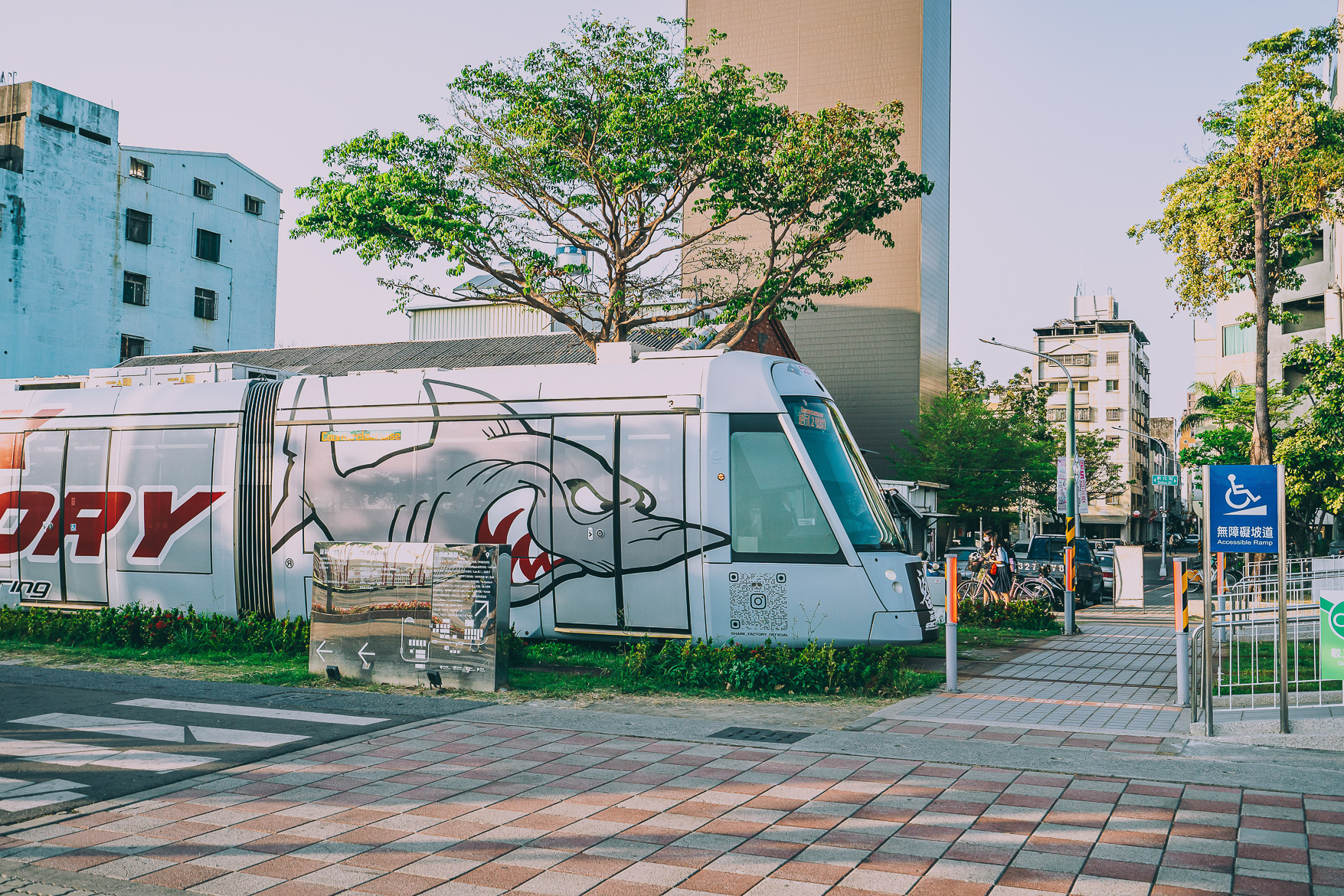จากจุดนี้จะมีรถไฟรางเบาวิ่งผ่านตลอดทั้งวัน และลายของรถไฟเค้าคือน่ารักมาก แต่ละขบวนก็จะตกแต่งต่างกันไป
