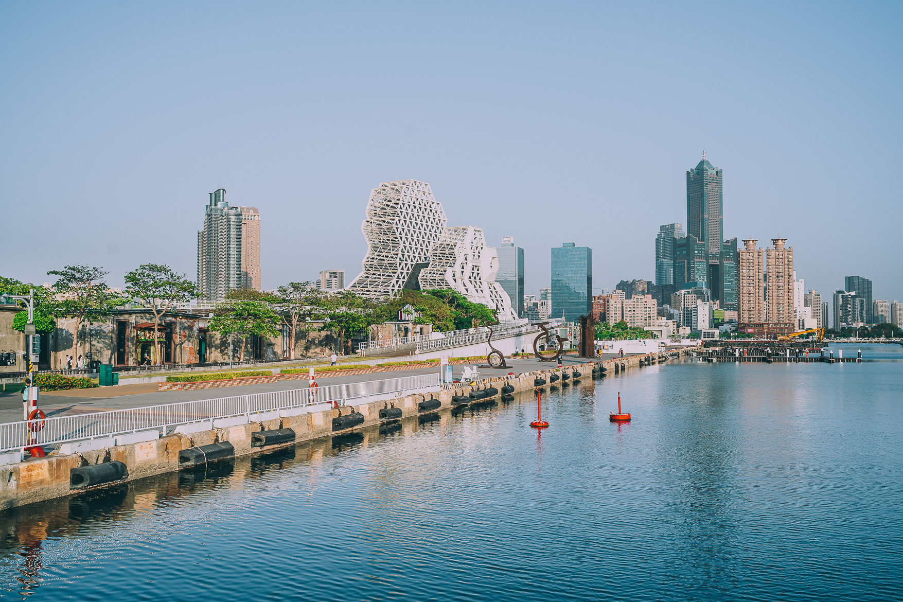 วิวดีงามจริงๆ ตรงนี้ยังมองเห็น Kaohsiung Music Center ด้วยนะ หรือใครอยากเดินไปก็สามารถเดินเล่นชิลๆ ไปได้เลย หรือจะนั่งรถไฟรางเบาก็ได้ลงสถานี Yanchengpu
