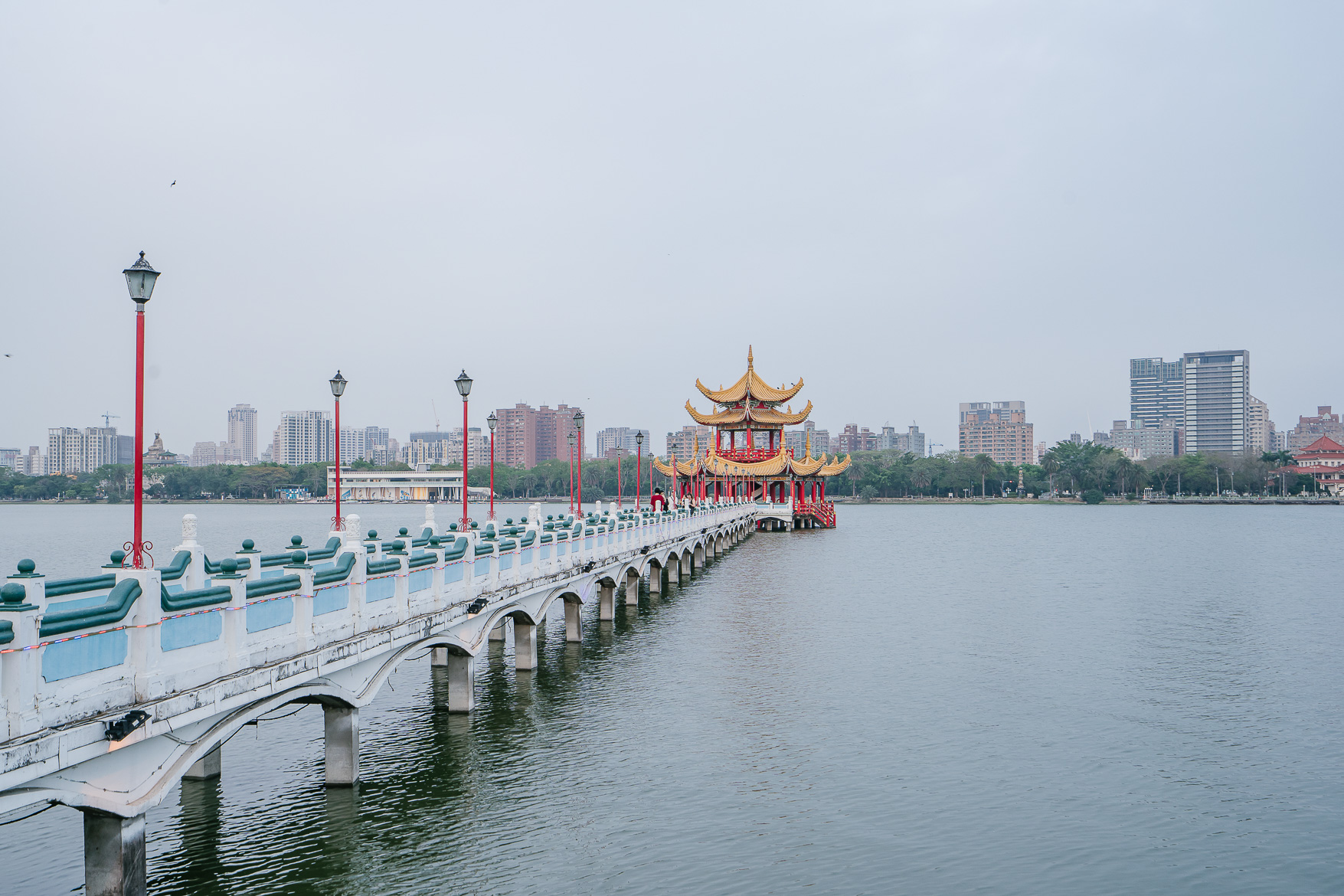 สะพานที่ทอดยาวเพื่อเดินไปยังศาลาริมน้ำ ซึ่งศาลาด้านในนั้นคือศาลาอู๋หลี่ถิง (五里亭) เป็นอีกหนึ่งจุดที่คนนิยมเดินไปถ่ายรูปกัน