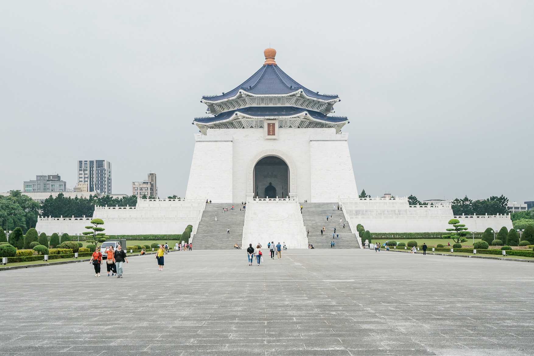 มีซุ้มประตูที่ใหญ่ที่สุดในไทเป ด้วยความสูงถึง 30 เมตร กว้าง 80 เมตร และนอกจากตัวอาคารกับสวนด้านนอกที่สวยงามแล้ว ด้านล่างของอนุสรณ์สถาน ยังเป็นห้องสมุด และพิพิธภัณฑ์ที่แสดงเกี่ยวกับประวัติ และชีวิตการทำงานของประธานาธิบดีเจียง ไคเช็ค อีกด้วย