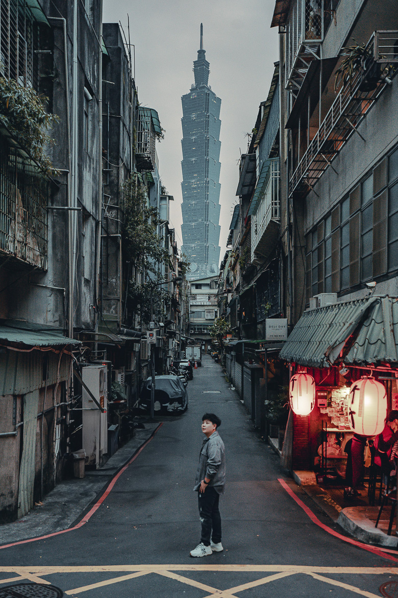 13. จุดถ่ายวิวตึก Taipei 101 ซอยร้านราเมง Takemura Izakaya จุดเช็คอินสุดท้ายของทริปนี้ยกให้มุมถ่ายตึก Taipei 101 ที่ถือเป็นอีกหนึ่งจุดที่สามารถมาถ่ายรูปตึกสวยๆ แบบนี้ได้มาตอนเย็นๆ หรอก่อนค่ำ จะได้บรรยากาศแบบนี้