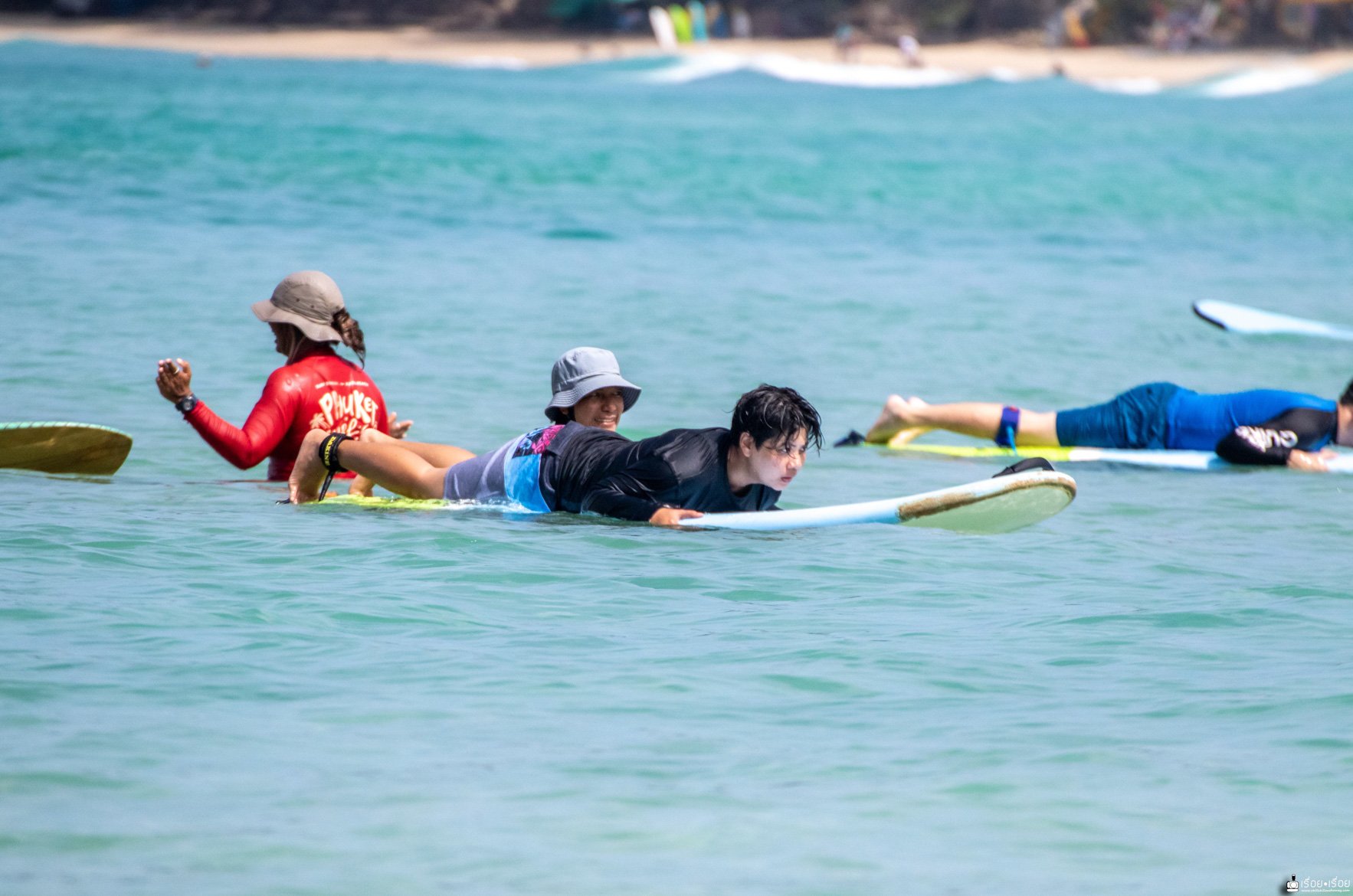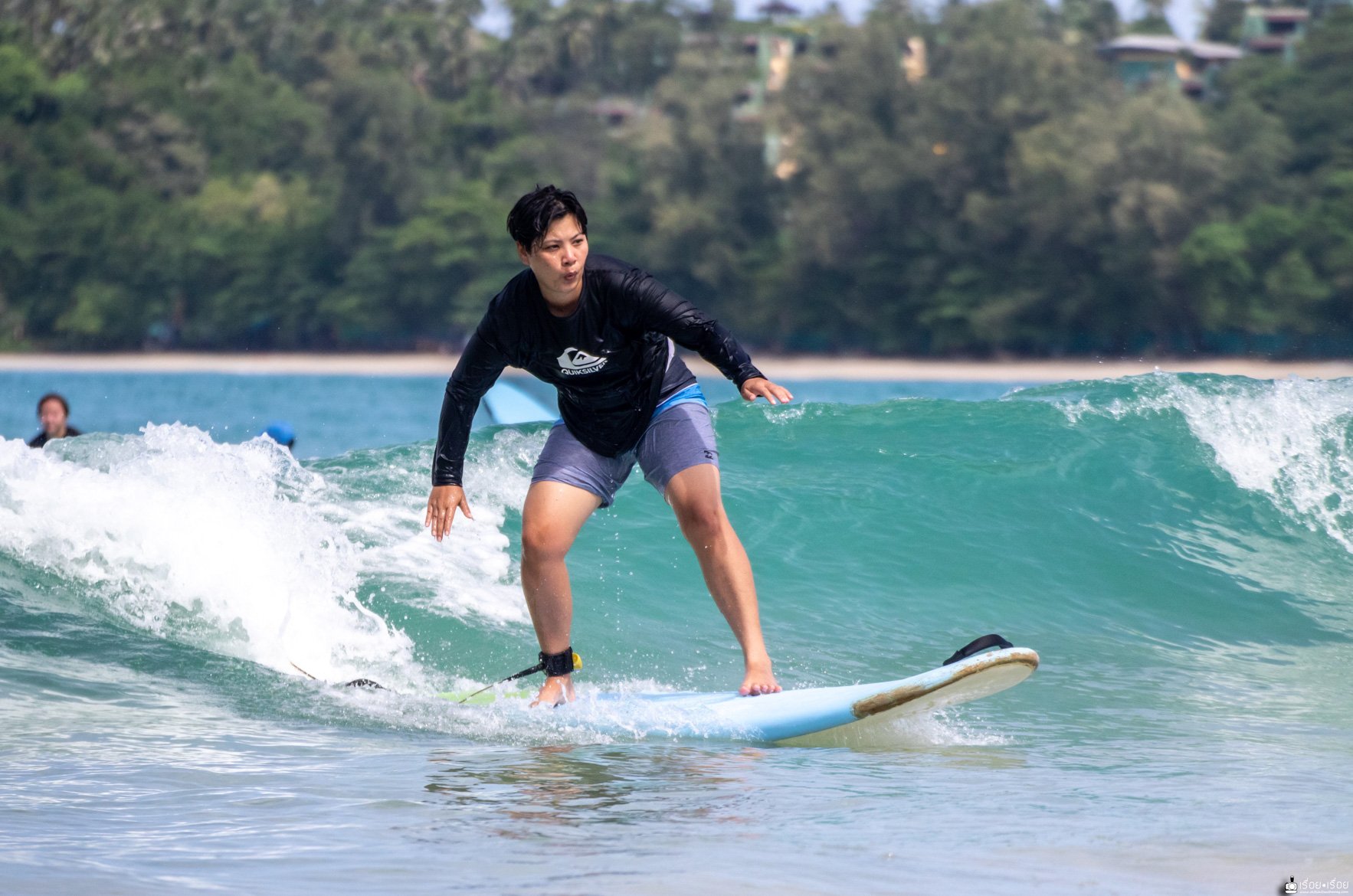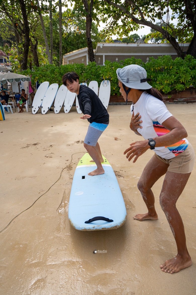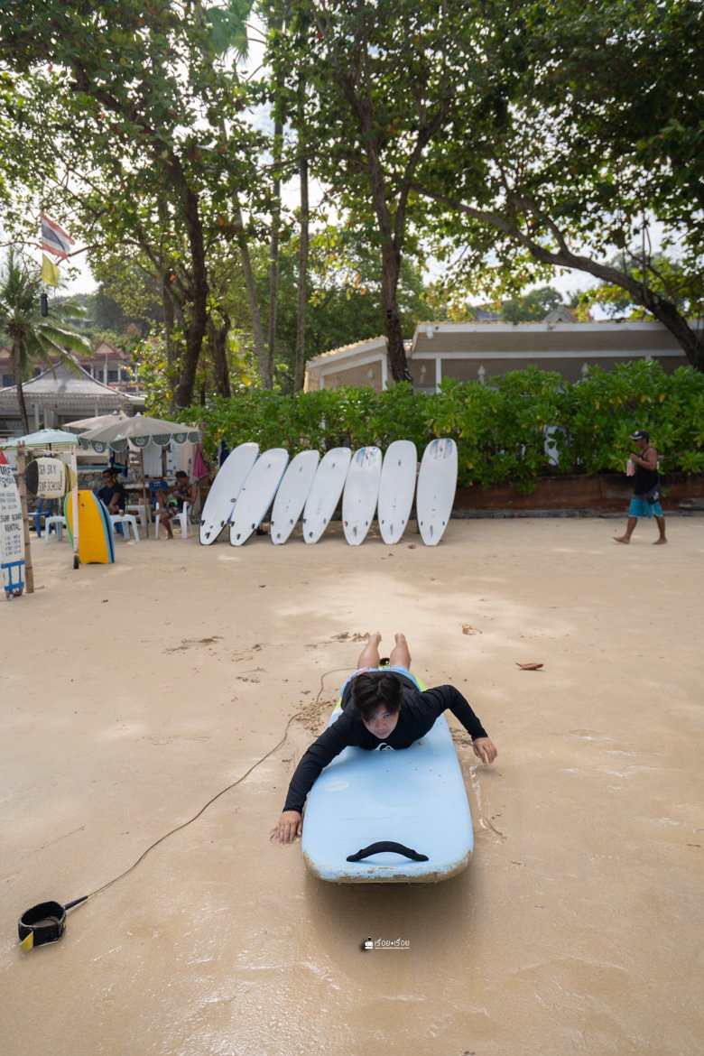 ทริปนี้ตั้งใจมาเรียน Surf ที่หาดกะตะ รายละเอียดการเรียน Surf สำหรับมือใหม่นั้น ไม่ยากอย่างที่คิดเพราะเราก็มาครั้งแรกเหมือนกัน ใจล้วน ๆ มีแค่ใจกะพกตังค่าเรียนมา 1200.- แค่นั้นเลย ราคานี้เรียน 1.30 ชม. นะ มีครูสอนทั้งทฤษฎีบนบกและคอยดูแลไม่ห่างอยู่ในน้ำและเพราะมีครูนี่แหละถึงทำให้เรายืนได้