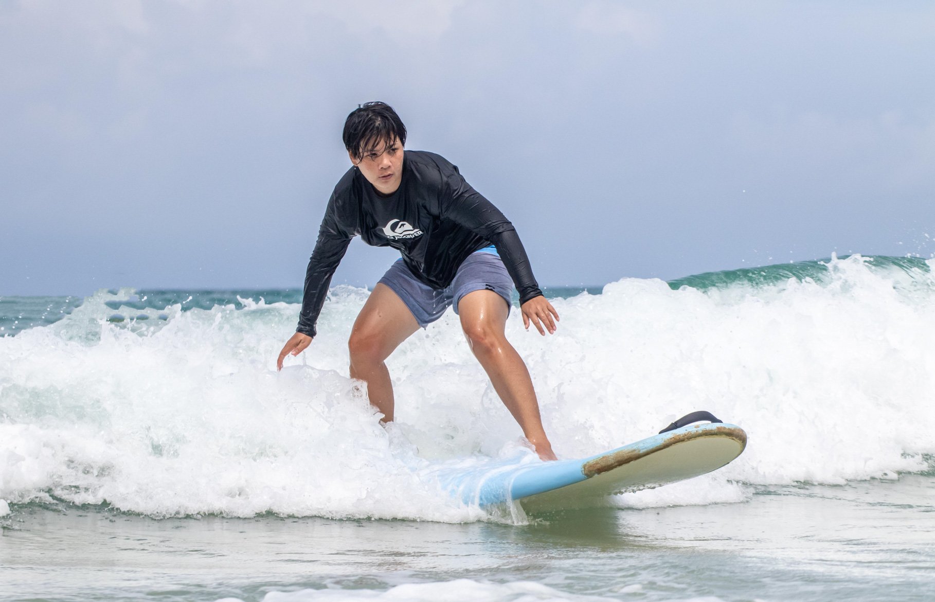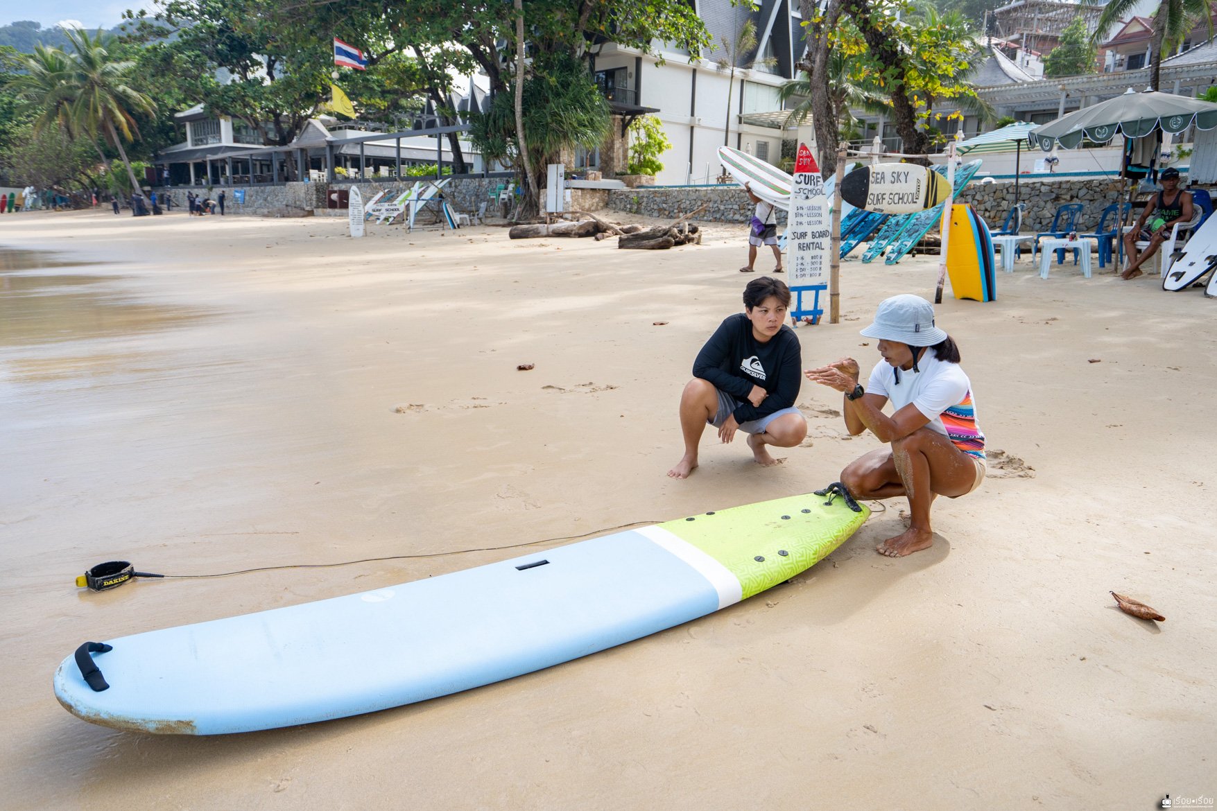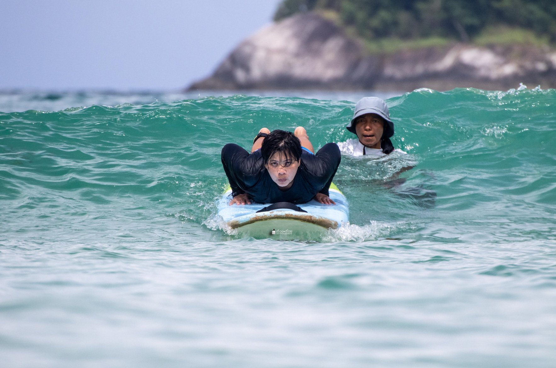 ทริปนี้ตั้งใจมาเรียน Surf ที่หาดกะตะ รายละเอียดการเรียน Surf สำหรับมือใหม่นั้น ไม่ยากอย่างที่คิดเพราะเราก็มาครั้งแรกเหมือนกัน ใจล้วน ๆ มีแค่ใจกะพกตังค่าเรียนมา 1200.- แค่นั้นเลย ราคานี้เรียน 1.30 ชม. นะ มีครูสอนทั้งทฤษฎีบนบกและคอยดูแลไม่ห่างอยู่ในน้ำและเพราะมีครูนี่แหละถึงทำให้เรายืนได้