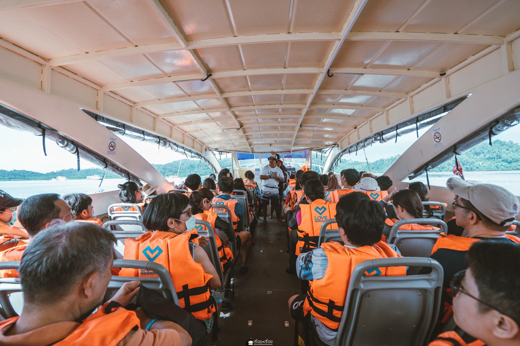 ถ้าพร้อมแล้วเราไปลุยกันเลย การเดินทางจะใช้เวลาประมาณ 1.20 ชม. แล้วแต่ดินฟ้าอากาศ ใครเมาเรือแนะนำนั่งตรงกลางหรือท้าย ๆ เรือนะคะ จะดีมากถ้ากินยากแก้เมาก่อน เราก็หนึ่งในนั้นแหละ กันไว้ดีกว่าไปถึงแล้วเมาเรือหมดสนุกเลยน๊า