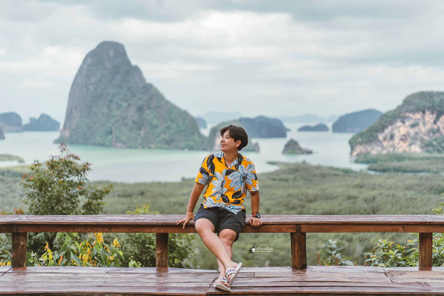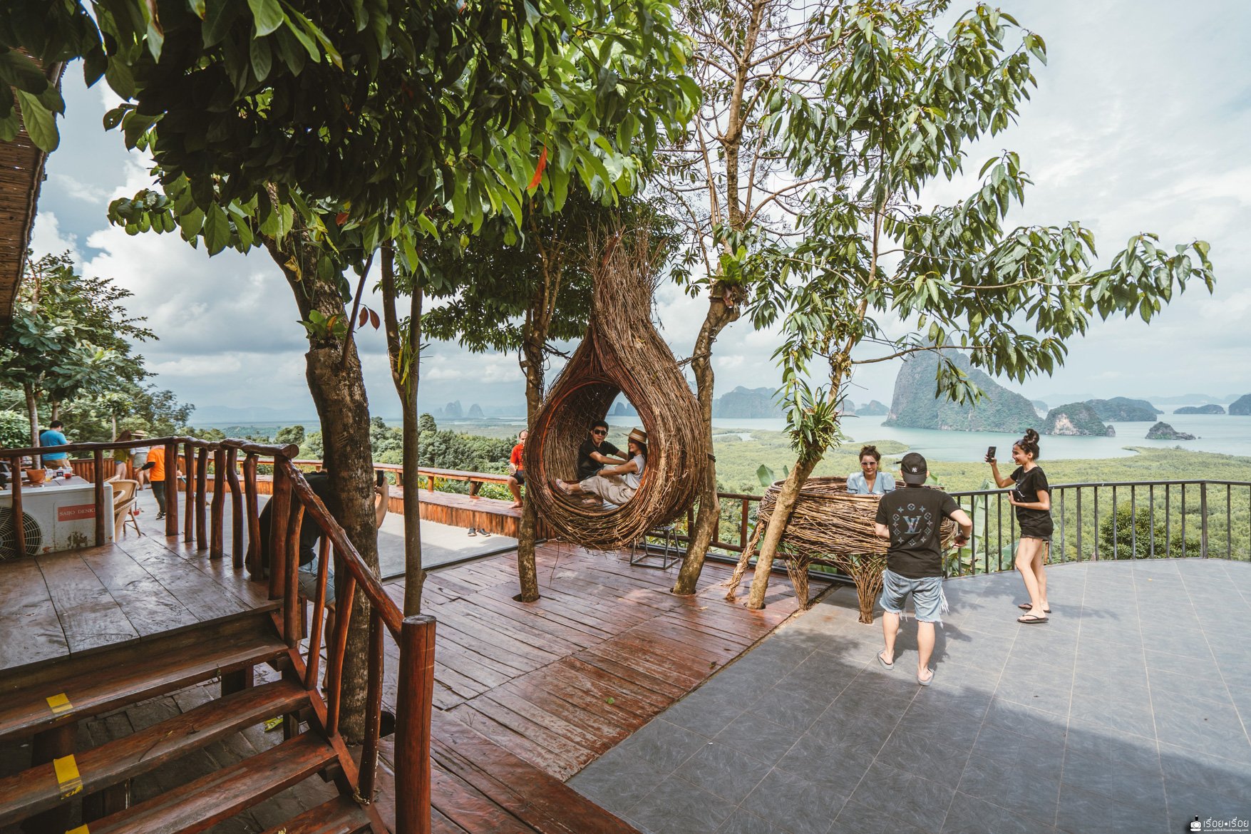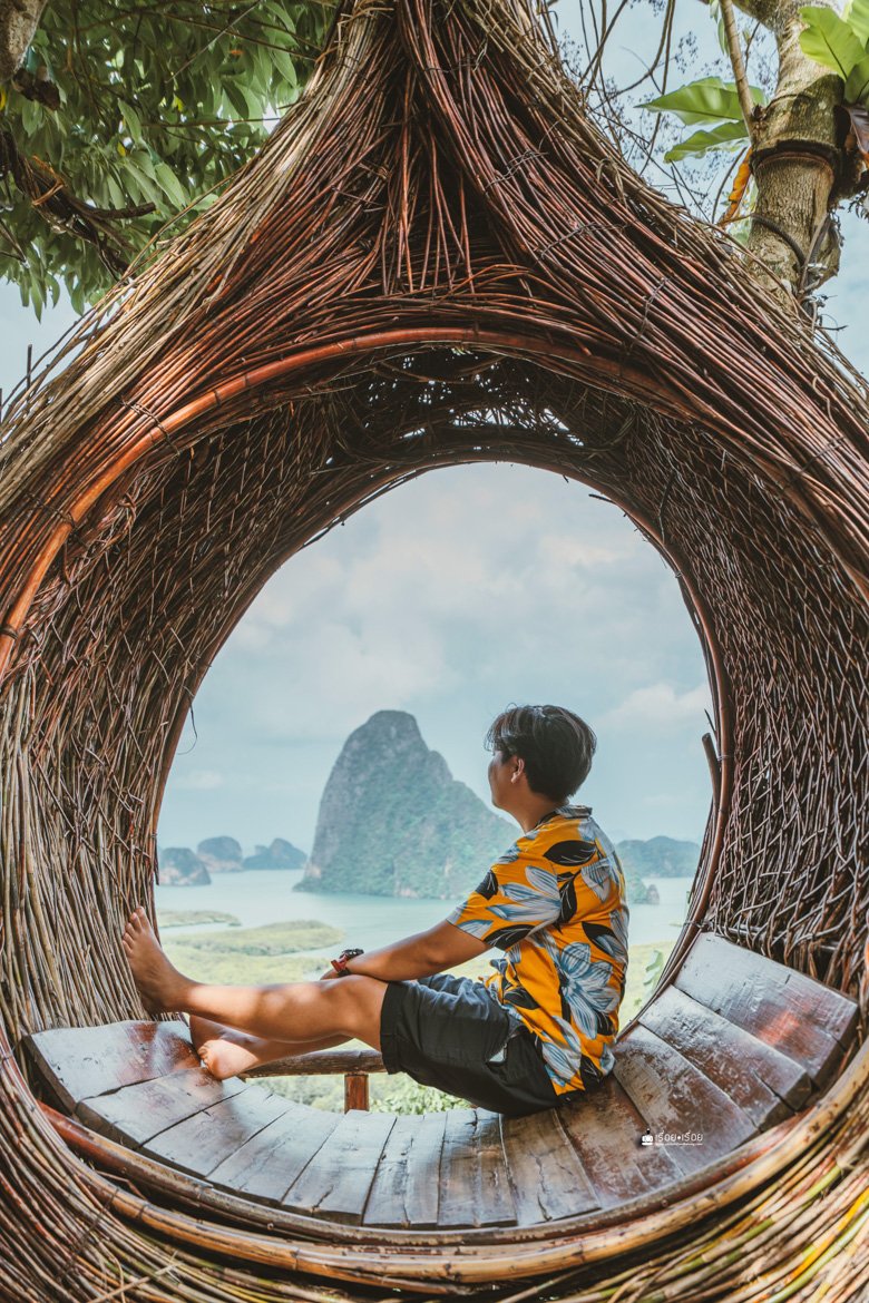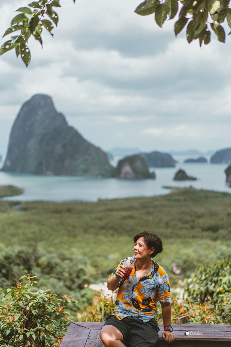 ความน่าหลงใหลได้ปลื้มของพังงา ก็อยู่ที่ตรงนี้แหละ เห็นแล้วอยากหยุดเวลา ก่อนจะขึ้นมาชมวิวในจุดนี้ได้ เราต้องไปจอดรถด้านล่างและซื้อตั๋วขึ้นมา (คนละ 50.-) สามารถเลือกจุดลงได้ว่าจะลงที่ร้านอาหารหรือคาเฟ่ ณ จุดนี้เป็นคาเฟ่