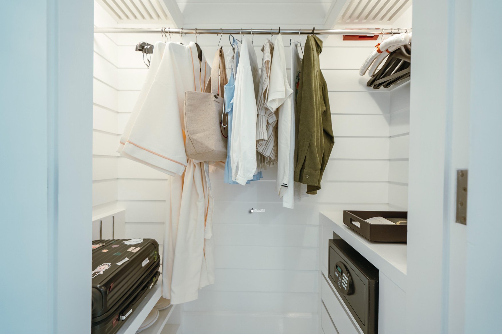 ในบริเวณห้องน้ำยังมีตู้เสื้อผ้าแยกไว้ให้ต่างหากอีกด้วย มีทั้งชุดคลุม รองเท้าแตะสำหรับใส่เดินไปข้างนอก สลิปเปอร์ไว้เดินภายในห้อง ตู้เซฟ และกระเป๋าผ้าไว้ให้ใส่ของ เรียกว่าครบมากจริง ๆ