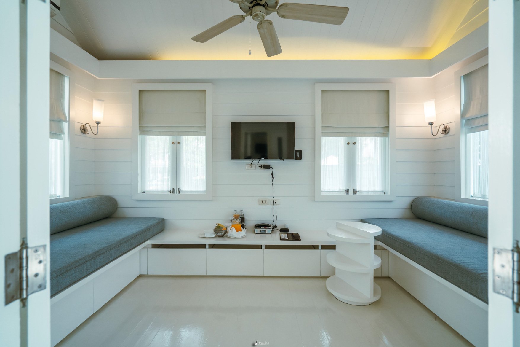 ห้องนั่งเล่นที่ทำแยกออกมาจากตัวห้องนอน เหมาะแก่การมานั่งดูหนัง เปิดแอร์เย็น ๆ หรือใครมาแบบครอบครัวห้องนี้ก็สามารถปรับให้เป็นห้องนอนของเด็ก ๆ ได้