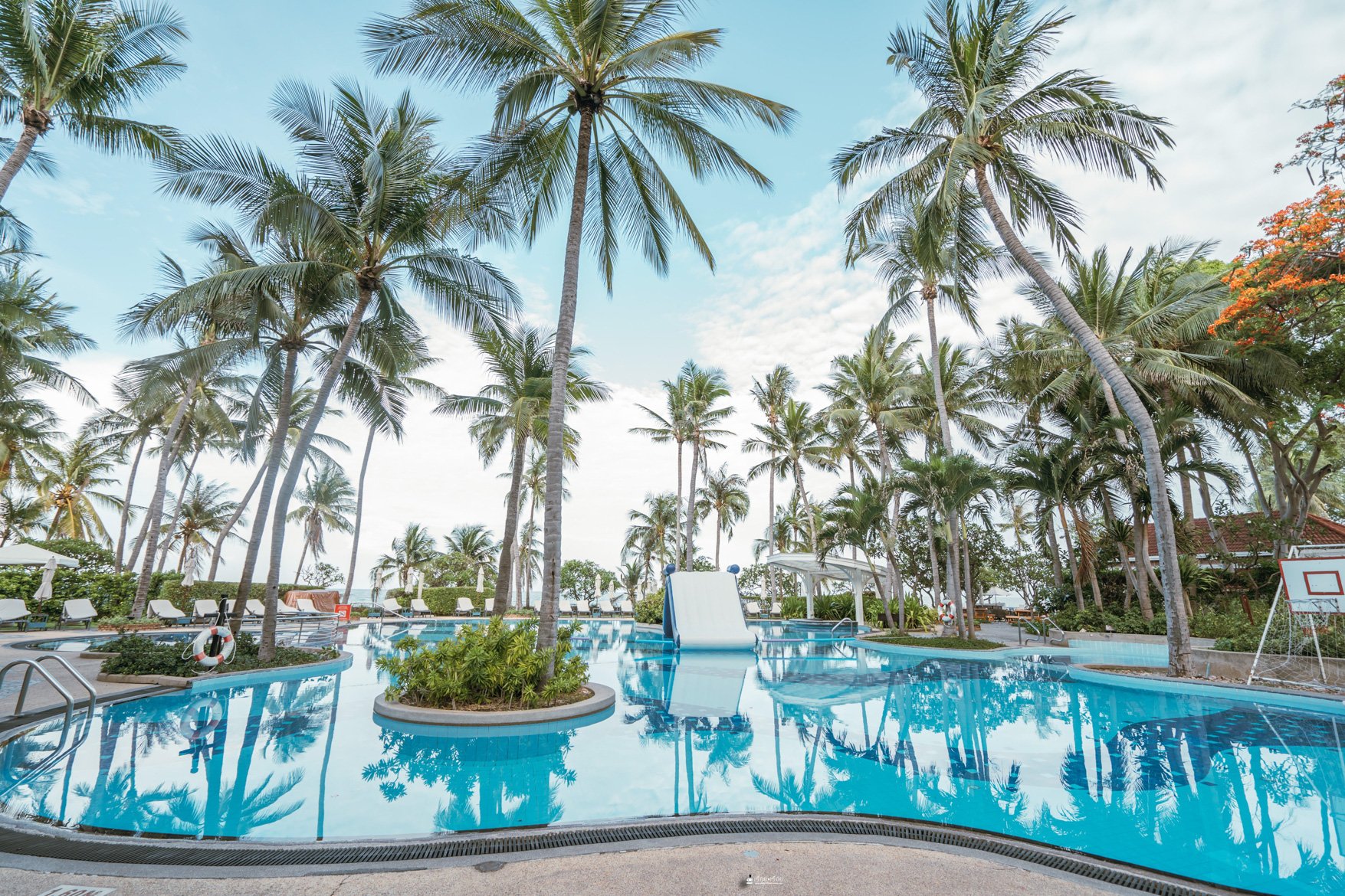 เมื่อเดินออกมาทางด้านหน้าหาด จะเจอกับสระว่ายน้ำขนาดใหญ่สามารถมองเห็นวิวทะเลได้ชัดเจน