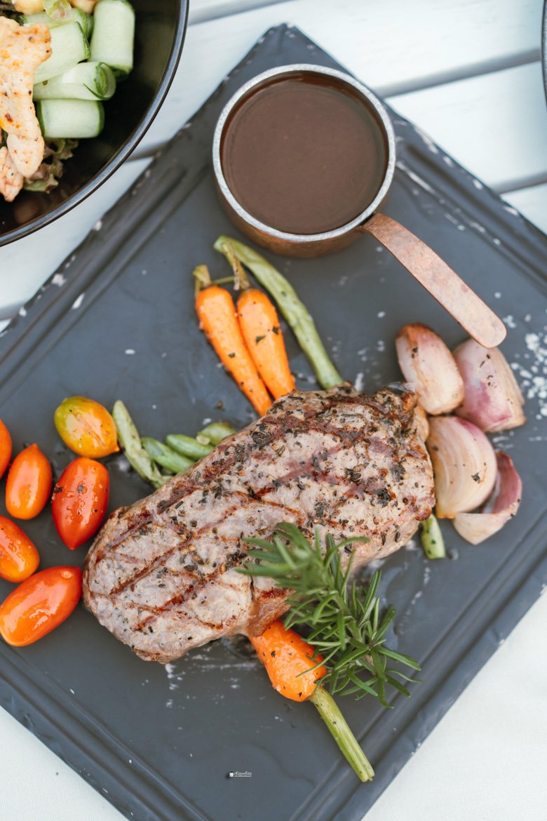 สเต็กเซอร์ลอยน์แองกัสคู่ซอสไวน์แดง (Angus Sirloin Steak With Red Wine Jus) ราคา 890++ บาท แนะนำสำหรับคนสายเนื้อ เนื้อนุ่มมาก สามารถเลือกความสุกได้อีกด้วย ซอสไวน์แดงคือเริ่ด