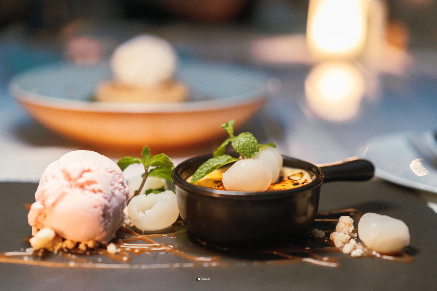 เครมบรูเล่ลำไย (Longan Crème Brûlée) ราคา 220++ บาท เป็นการจบมื้อค่ำได้อย่างสมบูรณ์แบบ อิ่ม อร่อยมากจริง ๆ