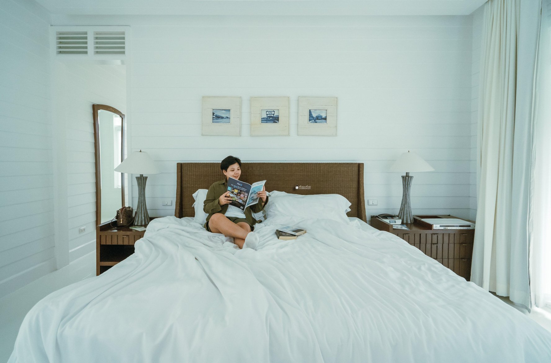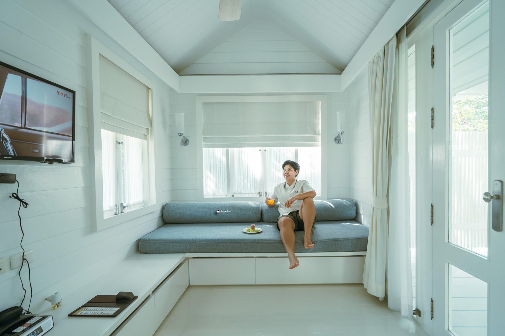 ห้องพักตั้งอยู่ในพื้นที่ที่เงียบสงบ โอบล้อมไปด้วยต้นไม้น้อยใหญ่ Villa ทุกหลังตกแต่งได้โดดเด่นด้วยเฉดสีของไม้และผ้าธรรมชาติที่นุ่มนวล บอกเลยว่ามีความอบอุ่น คุมโทน สบายตา รู้สึกถึงการได้มาพักผ่อนจริง ๆ ฝั่ง Villa ก็มีเจ้าหน้าที่คอยอำนวยความสะดวกให้ตลอดเวลาที่เข้าพัก