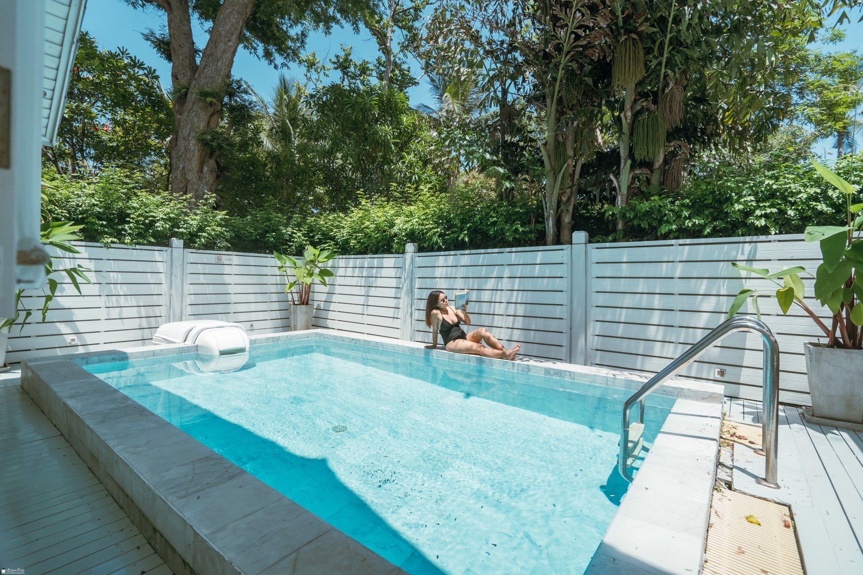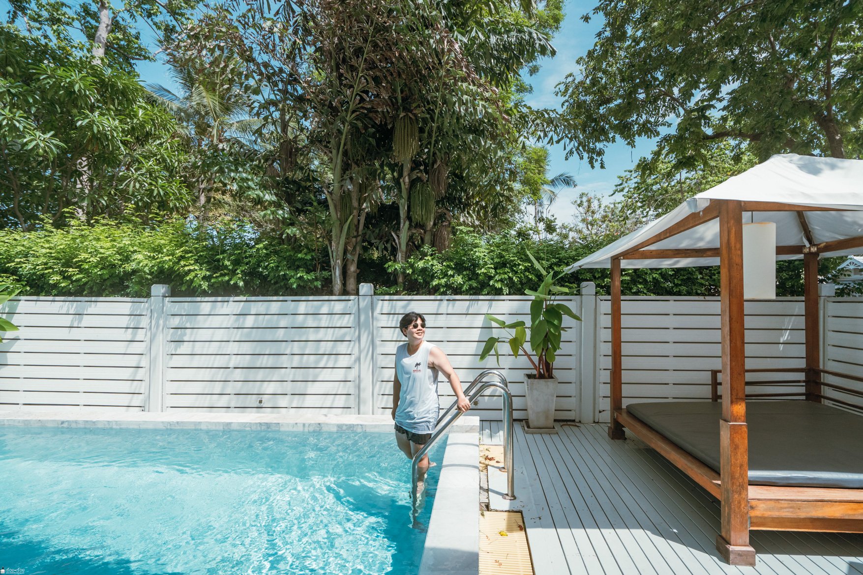 Villa One Bedroom Suite with Private Pool ภายในวิลล่าจะมี 1 ห้องนอน 2 ห้องน้ำ 1 ห้องนั่งเล่น และสระว่ายน้ำส่วนตัวกลางแจ้ง รวมถึงโซนนั่งชิลริมขอบสระ ที่สำคัญเตียงนุ่มมาก ๆ