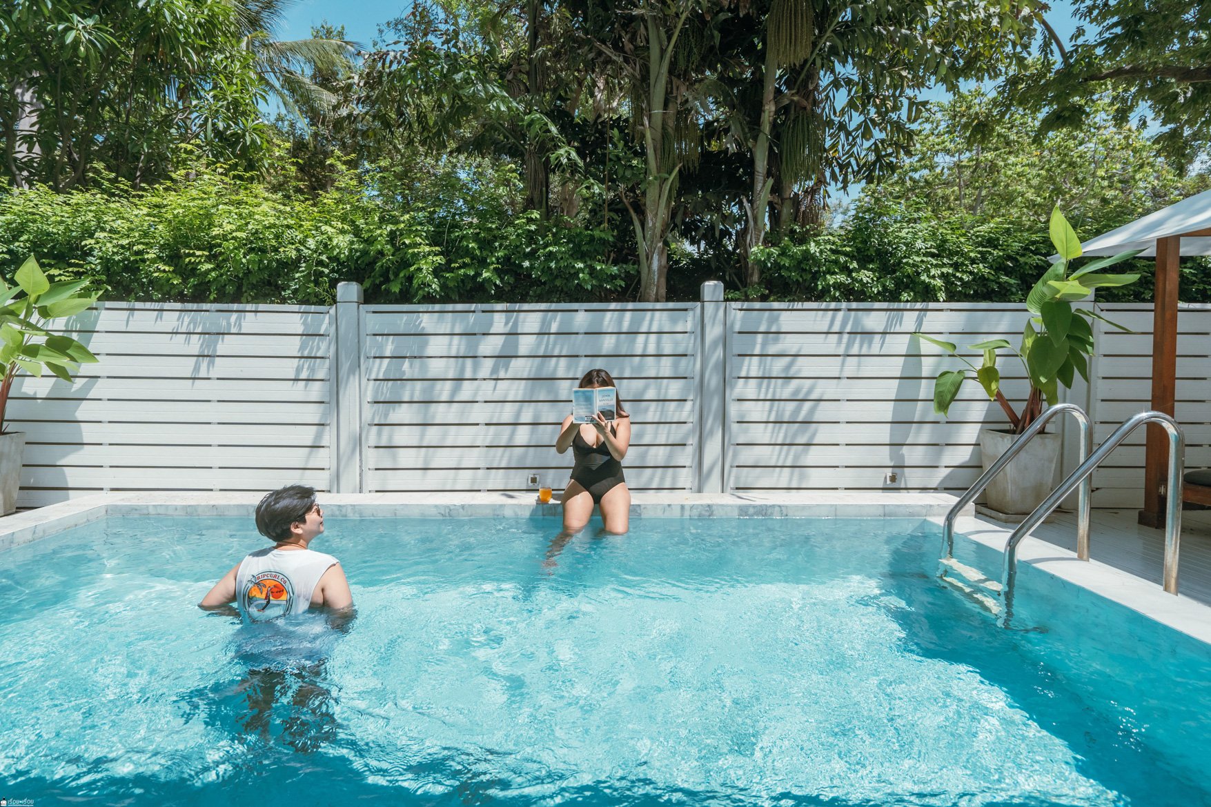 นี่แหละคือการพักผ่อนที่แท้จริง ๆ วันสบาย ๆ ที่สระว่ายน้ำ เล่นน้ำ อ่านหนังสือ แค่นี้ก็ได้ชาร์จแบตแล้ว