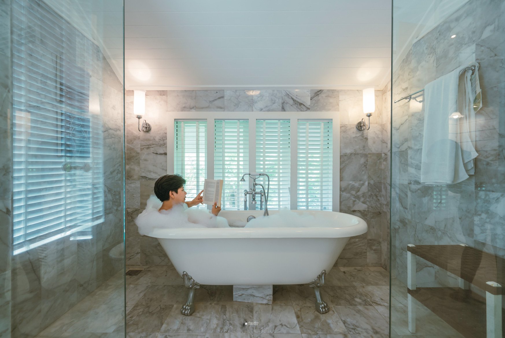 ในห้องพักจะมี Bath Foam ไว้ให้บริการ เปิดน้ำตีฟอง นอนแช่อ่านหนังสือ เพลินมาก