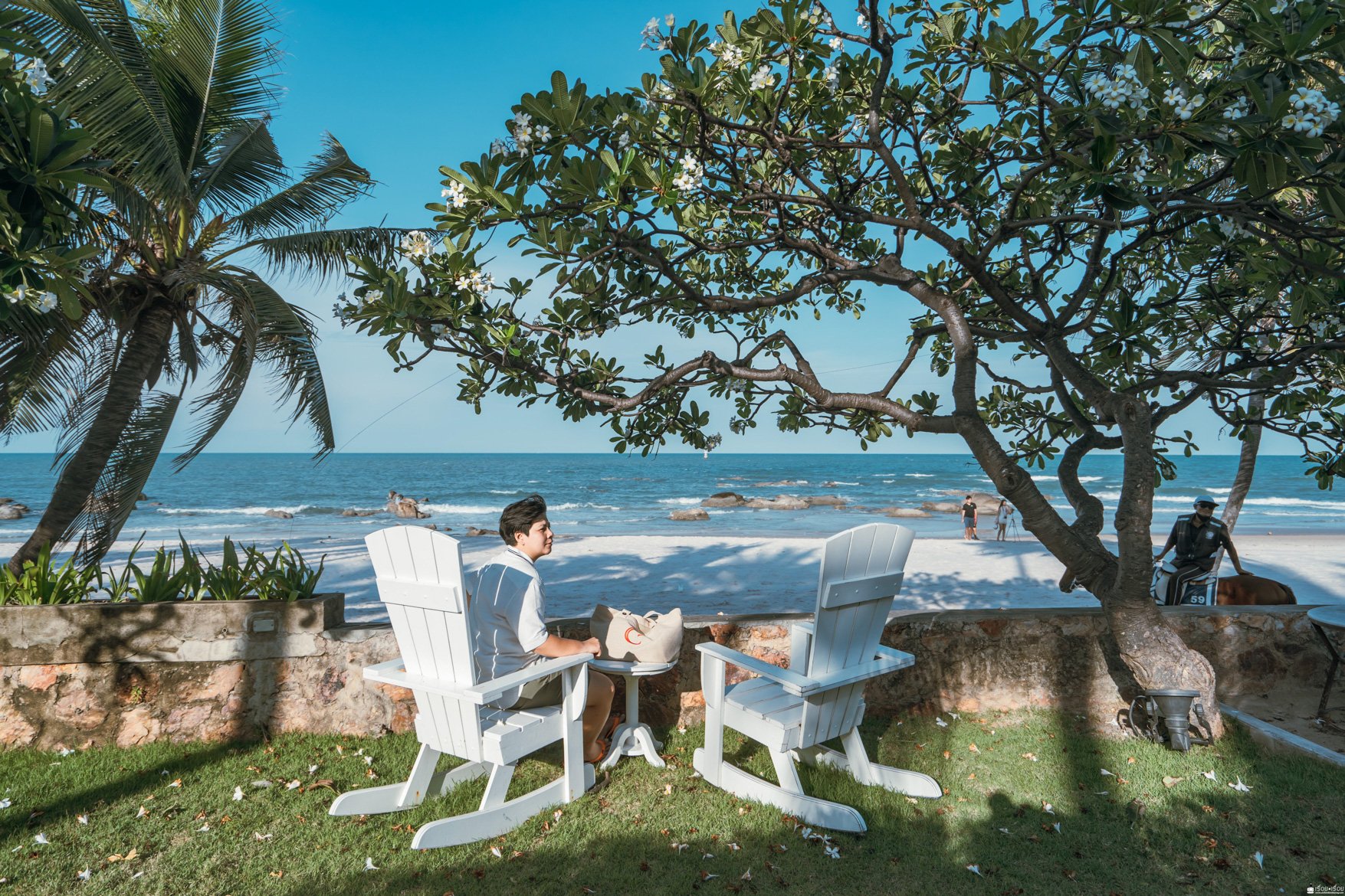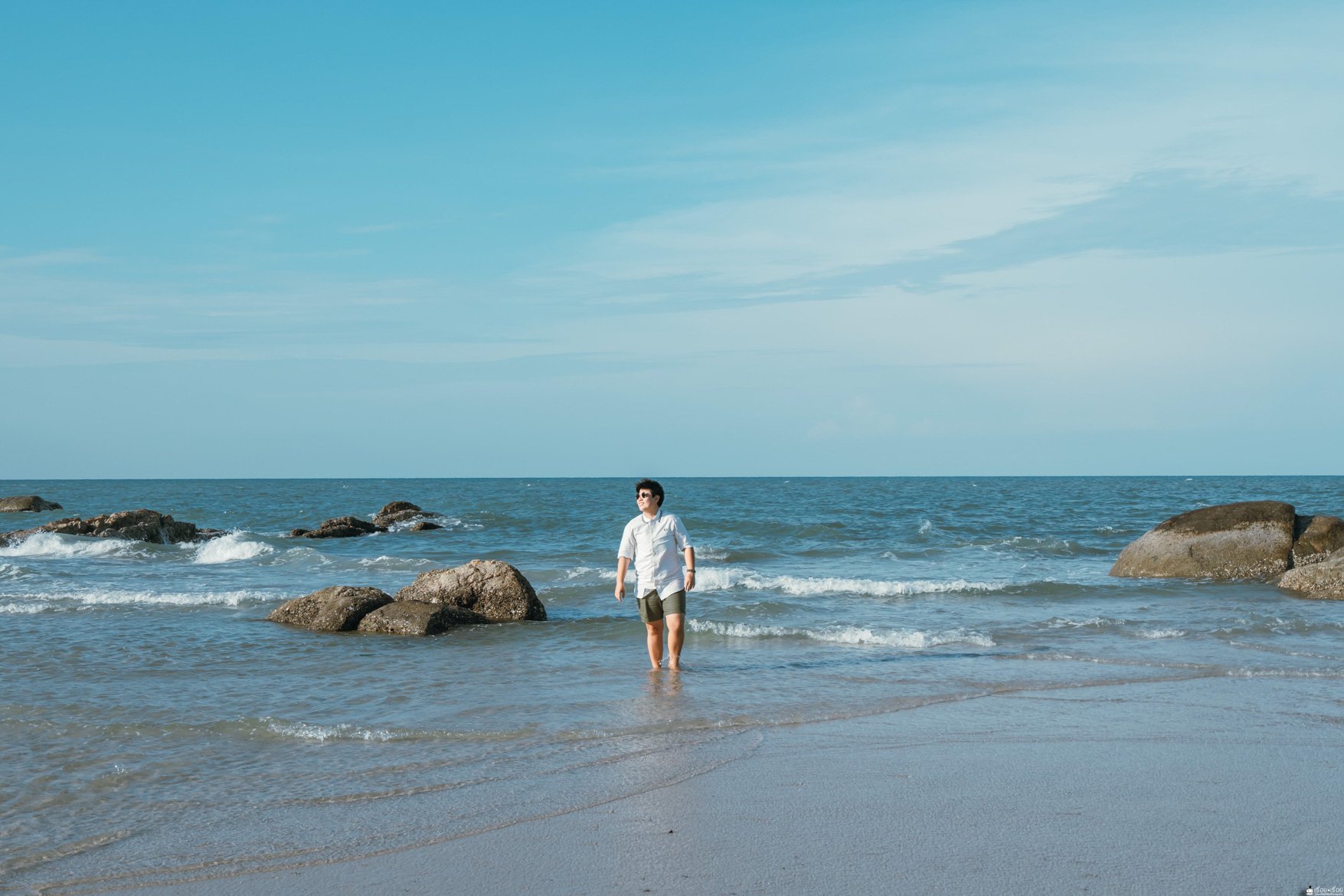 เพียงไม่กี่ก้าวก็เดินลงทะเลได้แล้ว บริเวณชายหาดหน้าห้องอาหารโคสต์ บีชคลับแอนด์บิสโทร (COAST Beach Club & Bistro) นอกจากจะเห็นวิวทะเลที่สวยงามแล้ว ยังมีทรายที่ละเอียดอีกด้วย ส่วนเรื่องถ่ายรูปต้องบอกว่าตรงโขดหินตรงนี้ฮอตมากจริง ๆ