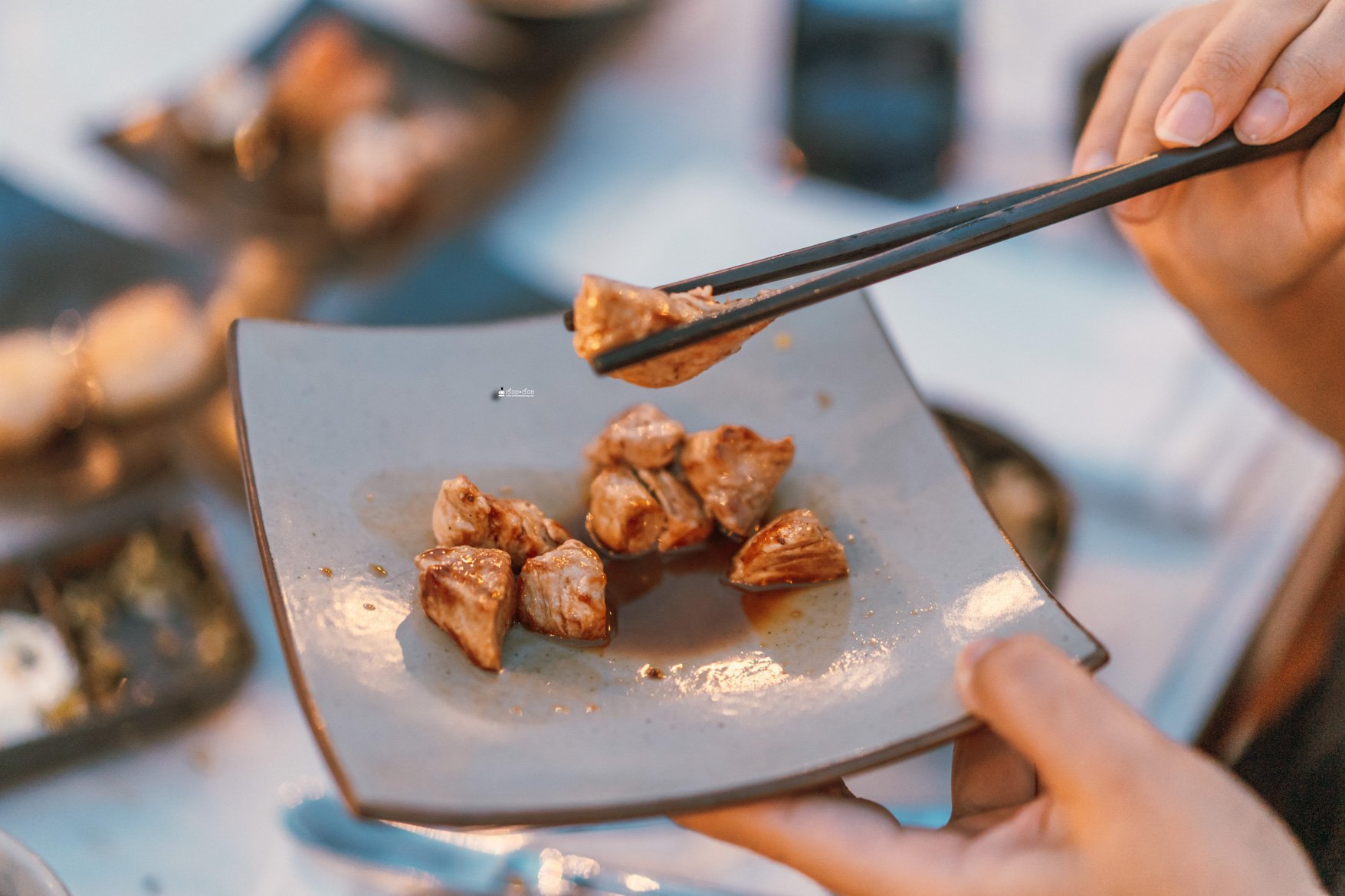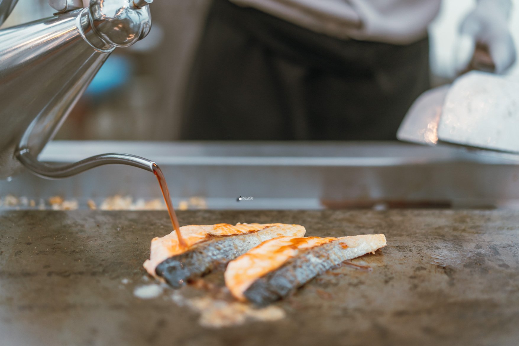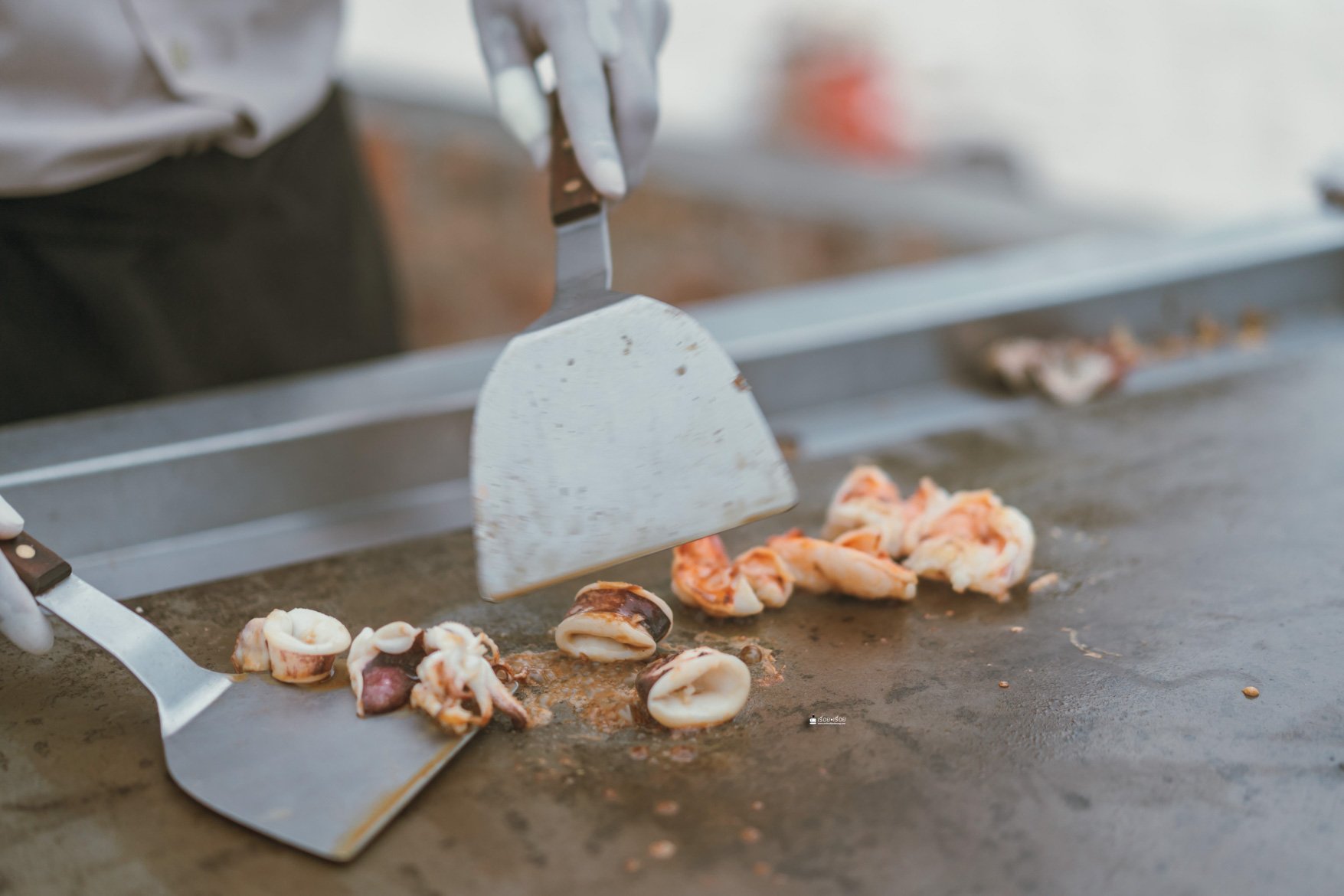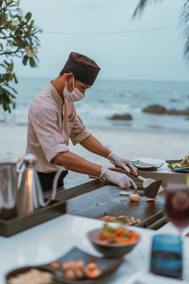 เมื่อจบ Canapés แล้ว เรามาต่อกันที่ โคสต์ เทปันยากิ บาย เดอะ บีช (COAST Teppanyaki By The Beach) ห้องอาหาร โคสต์ บีชคลับและบิสโทร เราจอง ‘เทปันยากิ’ แบบญี่ปุ่นไว้ เสิร์ฟแบบไม่ซ้ำใคร ริมหาดหัวหินมีเชฟมาทำแบบส่วนตัวให้จานต่อจาน